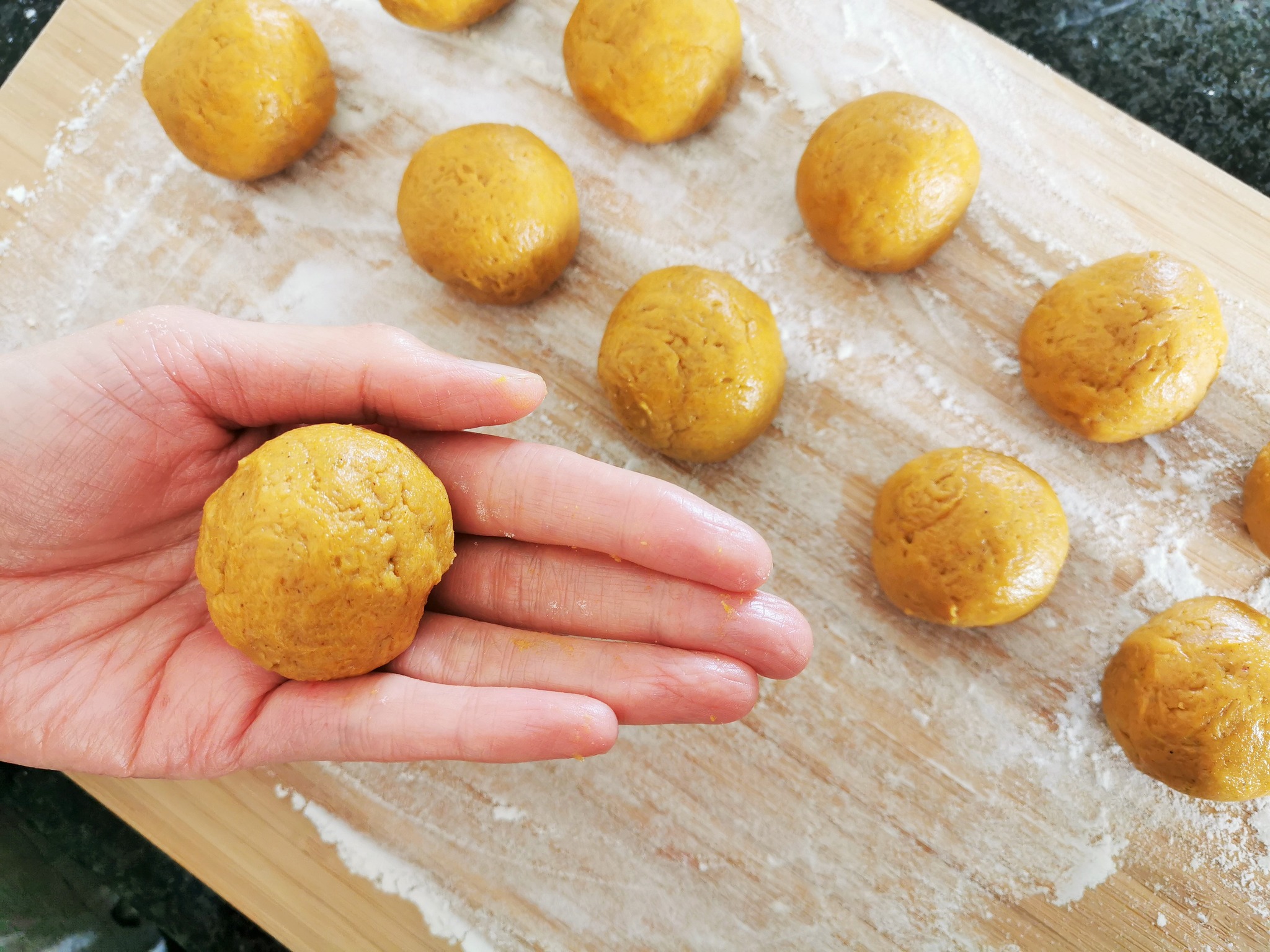 5. オーブンを180℃で予熱する。生地を20等分し、それぞれを球状(直径約4㎝くらい)に丸める。